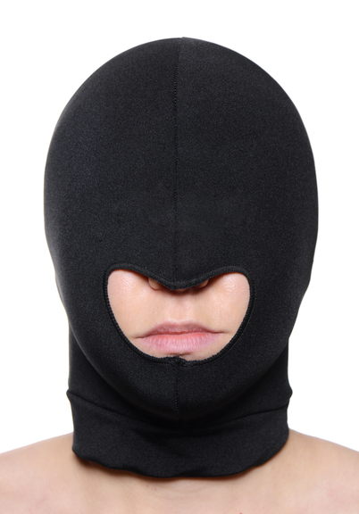 This devious disguise is designed to be comfortable, stretching completely over the head and obscuring their view. This lightweight hood features an opening for the mouth and will not hamper breathing, but will limit eyesight. The exposed mouth leaves open all kinds of naughty possibilities. Perfect for some calculated roleplaying, or insertion of a mouth gag or other exciting accessory. It is your domain…