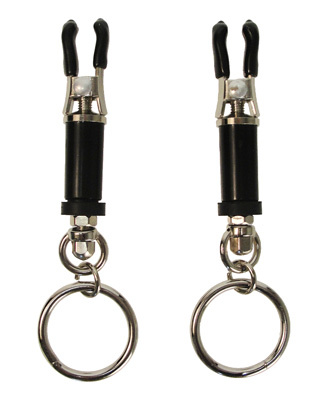 The Bondage Ring Barrel Clamps provide you with the framework for a wide array of torments. These heavy-duty clamps feature a dangling ring at their base that affords you countless bondage options. Let the rings hang and jingle as your sub moves around. Attach a chain from one ring to another that will swing with their movements and provide a slight tug, or a set of hanging weights for even more of a pull. The rings are perfect for attaching independent ropes or chains to create any nipple torture setup that you can imagine. The clamps are highly adjustable via their threaded barrels – no forgiving spring-loaded clamps here! Just screw them down tight for unrelenting pressure! Their rubber-coated tips keep your lover from having to remember their safe word (at least for now!).