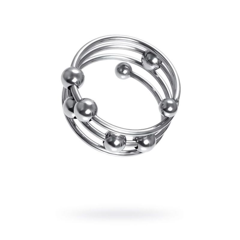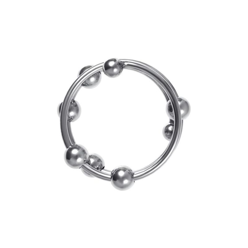 Multiple metal balls placed on the bridle of the penis stimulates arousal by directly massaging the area of the largest accumulation of nerve endings.