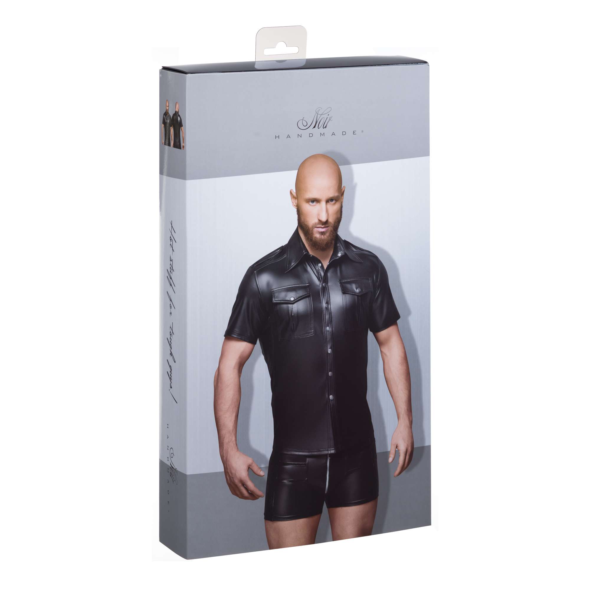 Sexy and elegant wetlook shirt for men. The shirt is fully buttoned in the front and two chest pockets. The perfect cut and the soft material ensures a perfect fit.