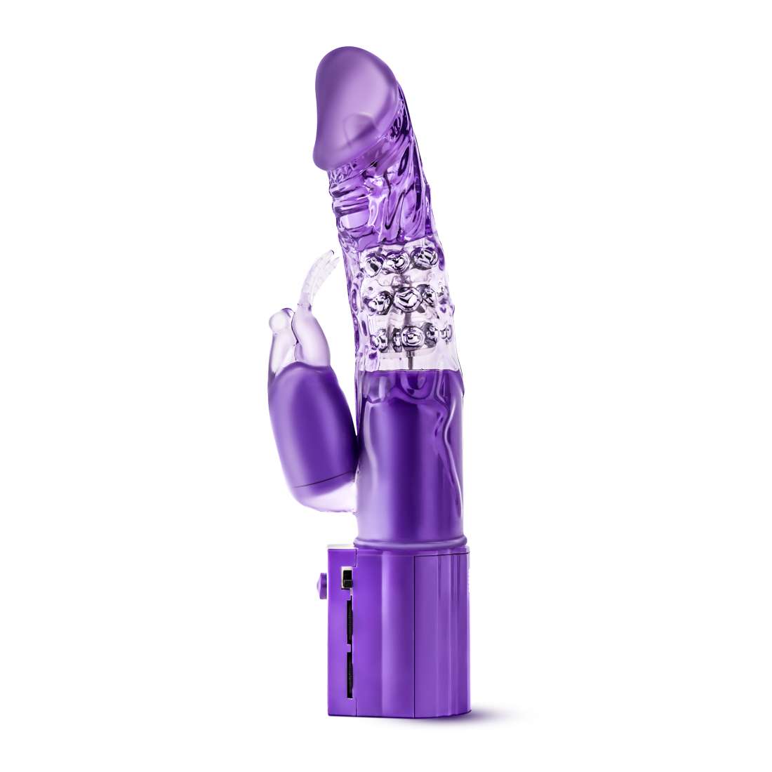 Are you looking for something satisfying and at a great value? Well, this Hunni Bunni knows where to go and wants to please you! This stylish, clitoral vibrator comes equipped to satisfy even the most hard-to-please woman by focusing on key erogenous zones. The shaft rotates (non jamming beads), gyrates and vibrates you to the perfect and let’s not forget the vibrating clit stimulation with 2 lengthy teasers, ready to please you! Let’s just say this is an understatement! AND all are multi-speed. The buttons and dials are easy to control and you will love the feature that lets you change the rotation (clockwise/counterclockwise). This toy is an incredible buy at a great price. Hunni Bunni was made Phthalate Free, from Elastomer, which is non-porous and easy to clean. Requires 3 AAA Batteries, not included.