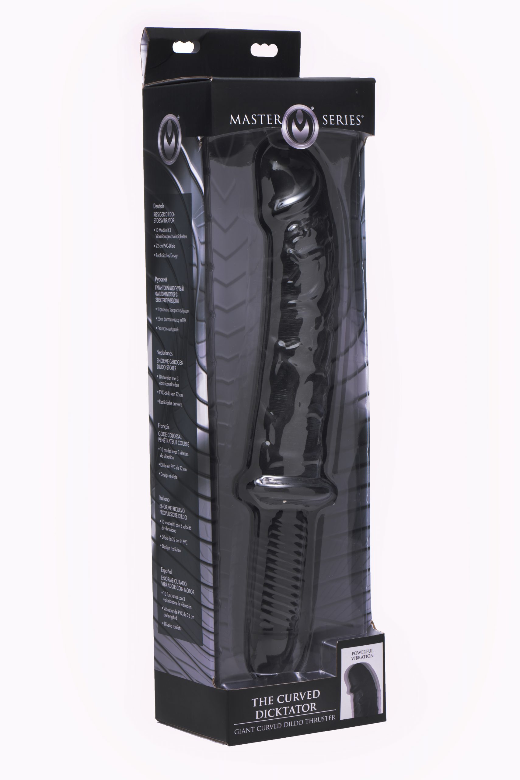 ng, thick, and veiny, the Curved Dictator is designed to hit all the right spots! This extreme thrusting shaft is shaped just like an actual penis, with a slight curve at the bulbous head and even more bulging details to massage you on the inside with every thrust. With a mighty 8.75 inches of textured length, 3 intense vibration speeds, and 10 unique patterns of pulsation, you have plenty to work with! Take hold of the grooved, easy-to-grip handle and aim for your favorite hole. Use on your own or with a partner for an intense penetrative experience! Compatible with both silicone and water-based lubricants.